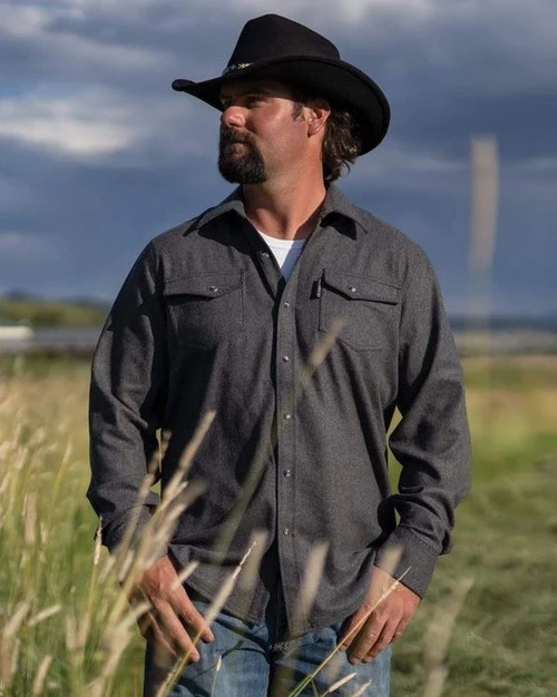 The Outback Trading Co. Cooper Shirt Jacket is a men’s Western shirt that makes a great mid-layer for warmth. This is not an insulated shirtjac but a wool blend Western shirt that can be worn alone, worn over a tee or baselayer and paired with vests or jackets. The versatile Slate grey color and classic Western style make it a valuable addition to a man’s working wardrobe.