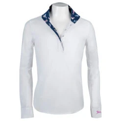 Hailey II equestrian coat for girls has subtle RJ Classics horse logo shank buttons, faux flap pockets, and comes in Navy or Black. The inside of the RJ Classics Hailey Coat has a stretch lining plus completely finished seams for durability. RJ Classics has created a traditional horse show coat for kids in a nice lightweight fabric that wicks moisture, is breathable, and can be machine washed. The Hailey II Coat looks elegant and professional and moves easily along with the rider. Choose Black or Navy.